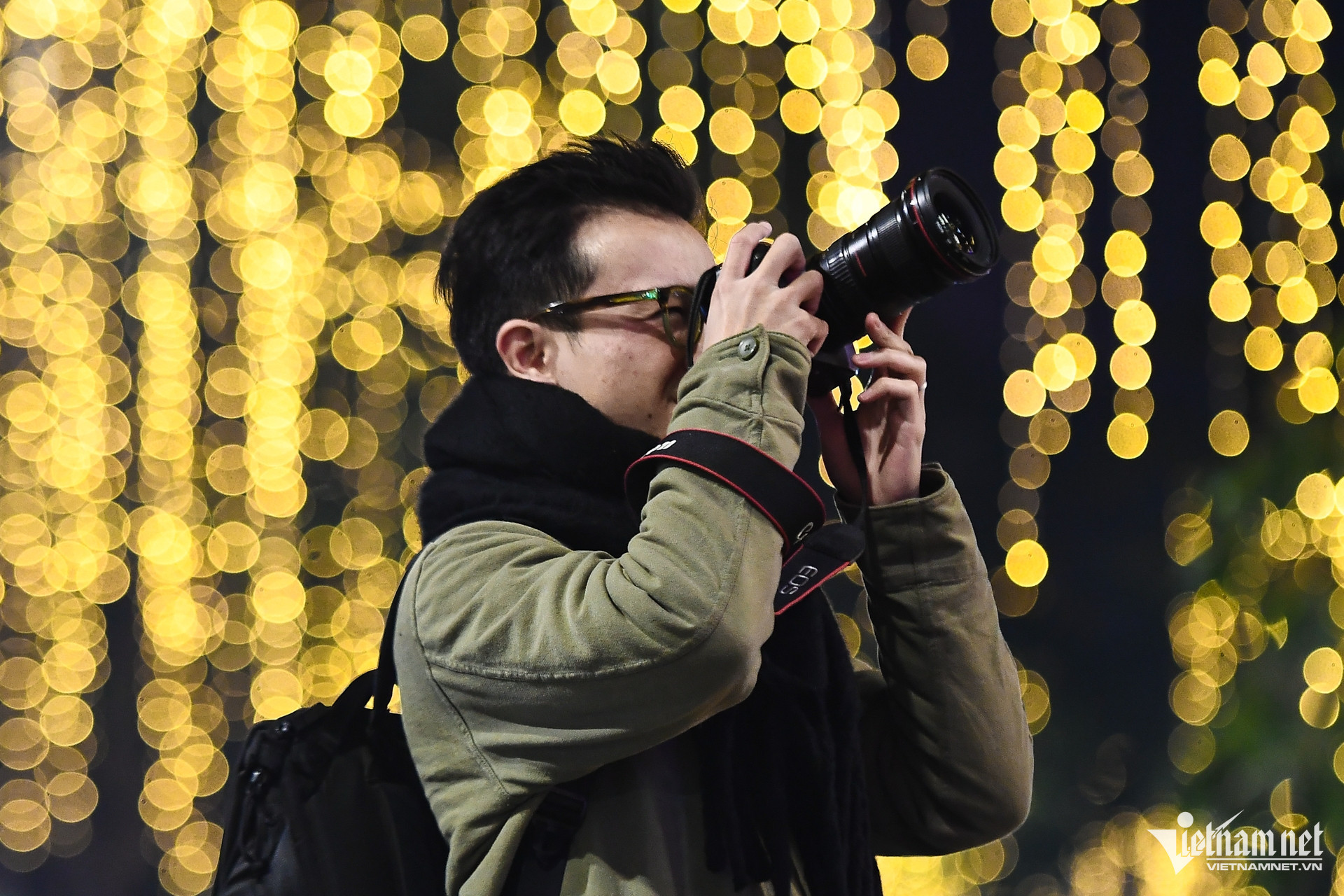 The streets around St. Joseph's, such as Nha Chung, Hang Trong, and Ly Quoc Su, were packed with vehicles and pedestrians from early evening, as crowds gathered to revel in the festive cheer.