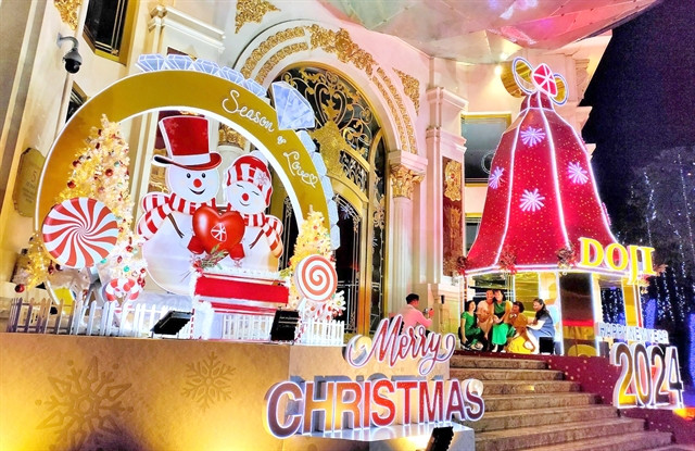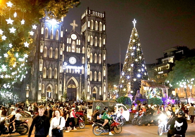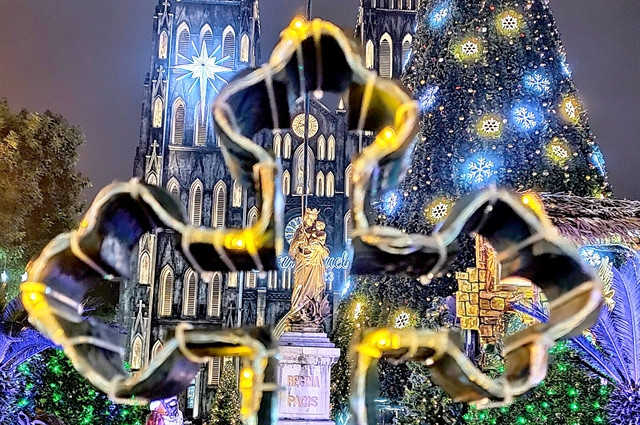 In many shopping malls, business centres, and churches in Hà Nội, colourful lights and giant Christmas trees have been set up with beautiful decorations, capturing the attention of visitors and passers-by.