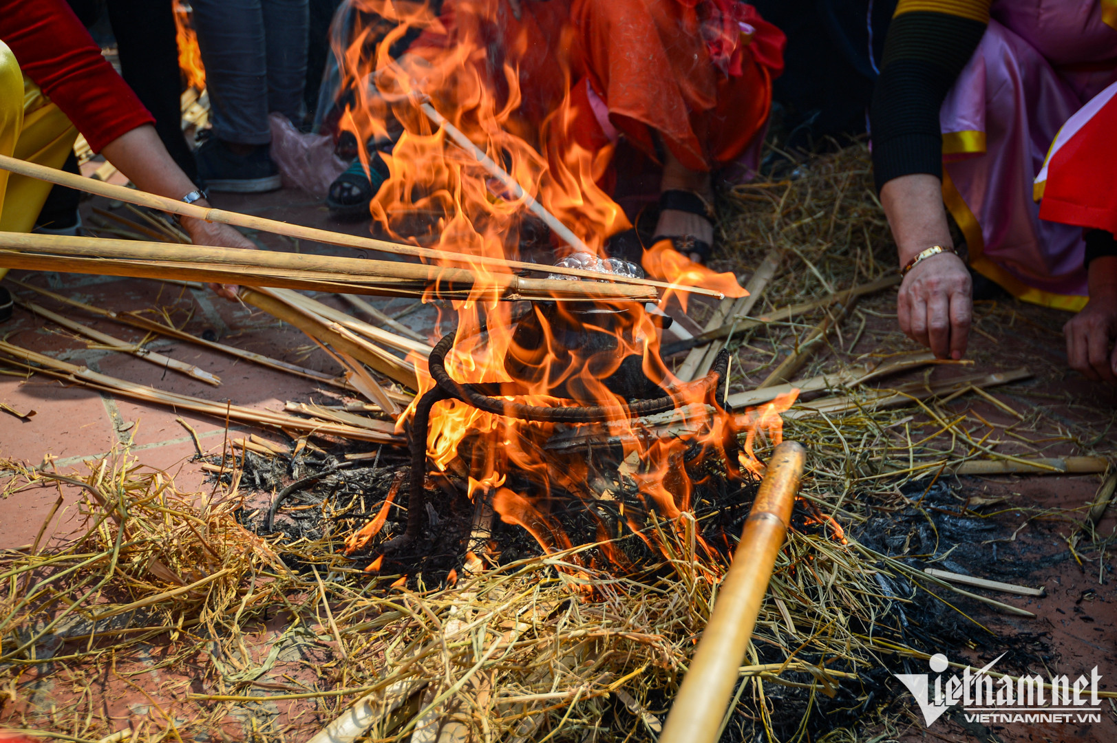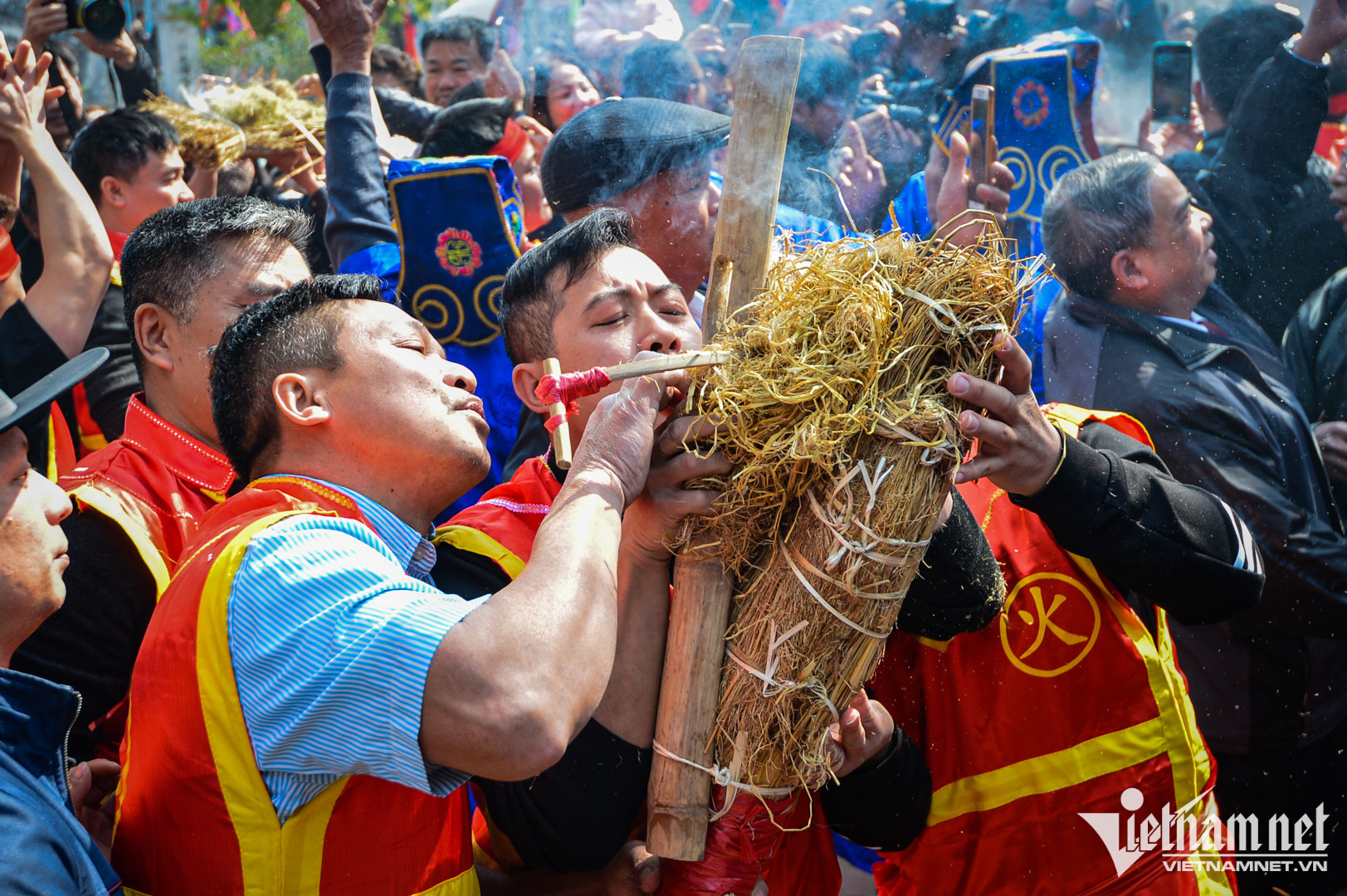 The main parts of the contest include crushing rice, blowing fires, taking water and cooking rice. The contest has a very special "procedure" that when the rice pot runs out of water, the teams will hide the rice pot in piles of straw, that are still smouldering, in the communal house’s yard.