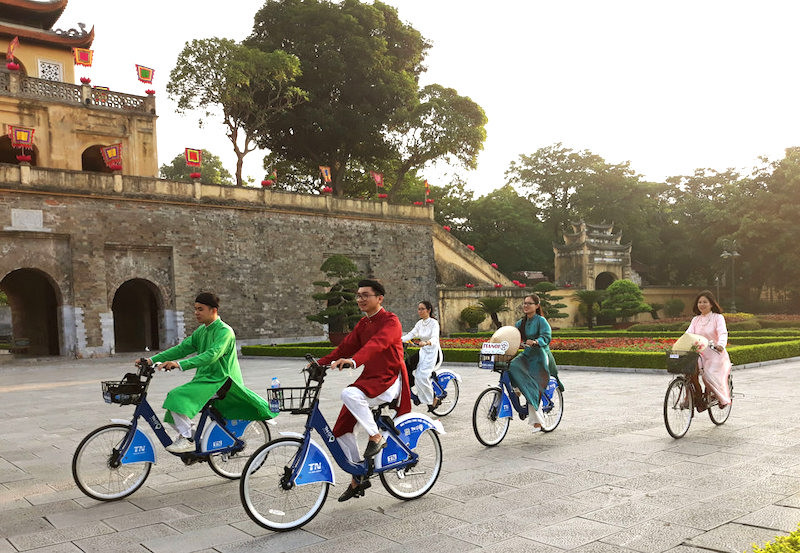 The activity is one of the many programs and festivals to promote tourism in the city. The first of a series of events under the "Ao Dai" program was held in Hanoi on September 1. Vietnamese and foreigners cycled through local streets on an autumn morning, exploring the unique beauty of Hanoi.
