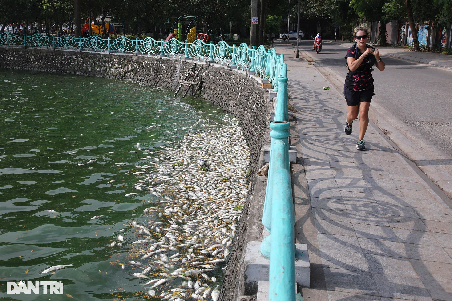 The dead fish drifted to the banks along some streets of Thanh Nien, Lac Long Quan, Nguyen Dinh Thi, Nhat Trieu, and Trich Sai.