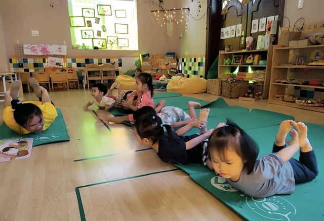 | Kindergarten students participate in exercise at a private school in HCM City’s Gò Vấp District. — VNS Photo Bồ Xuân Hiệp |