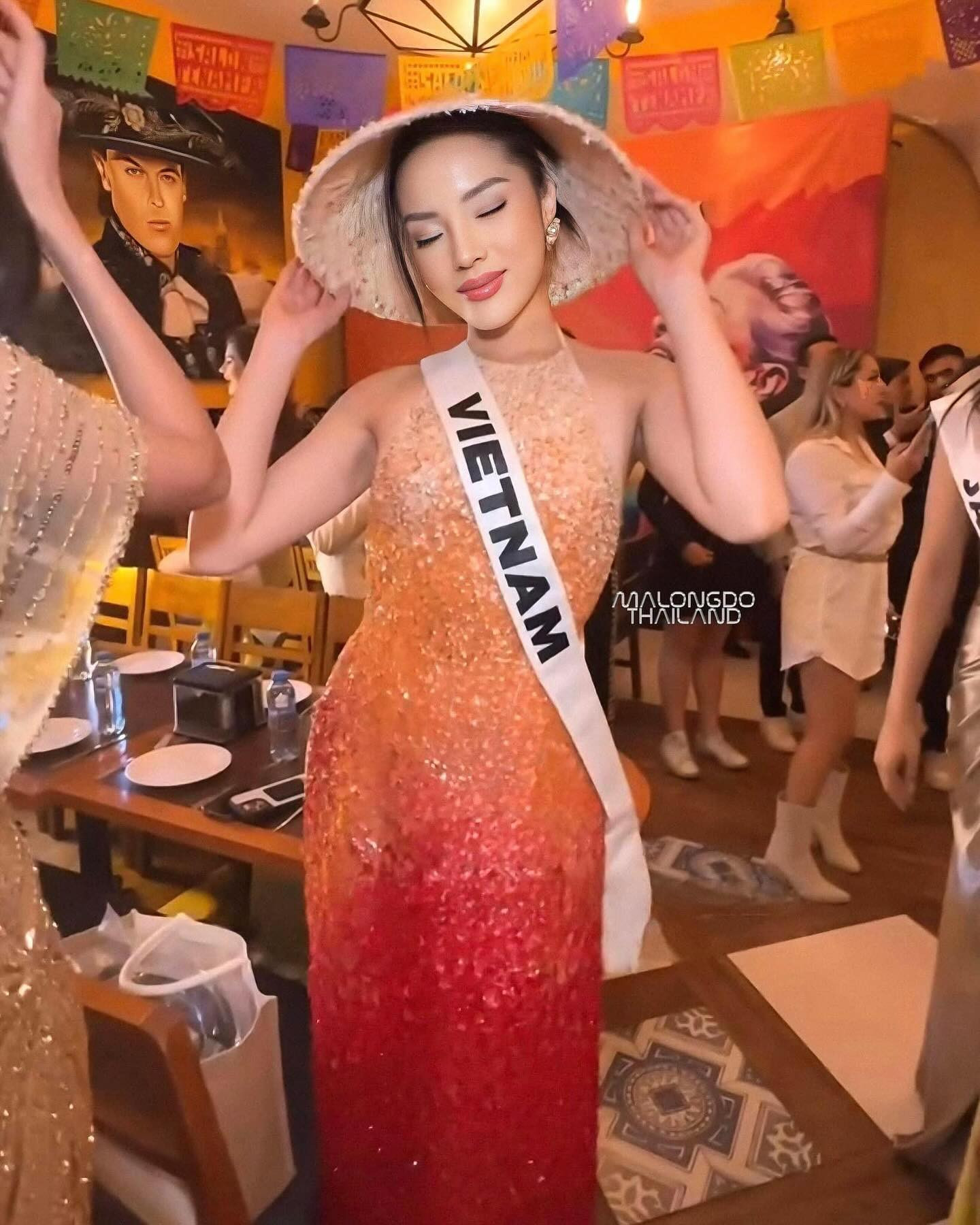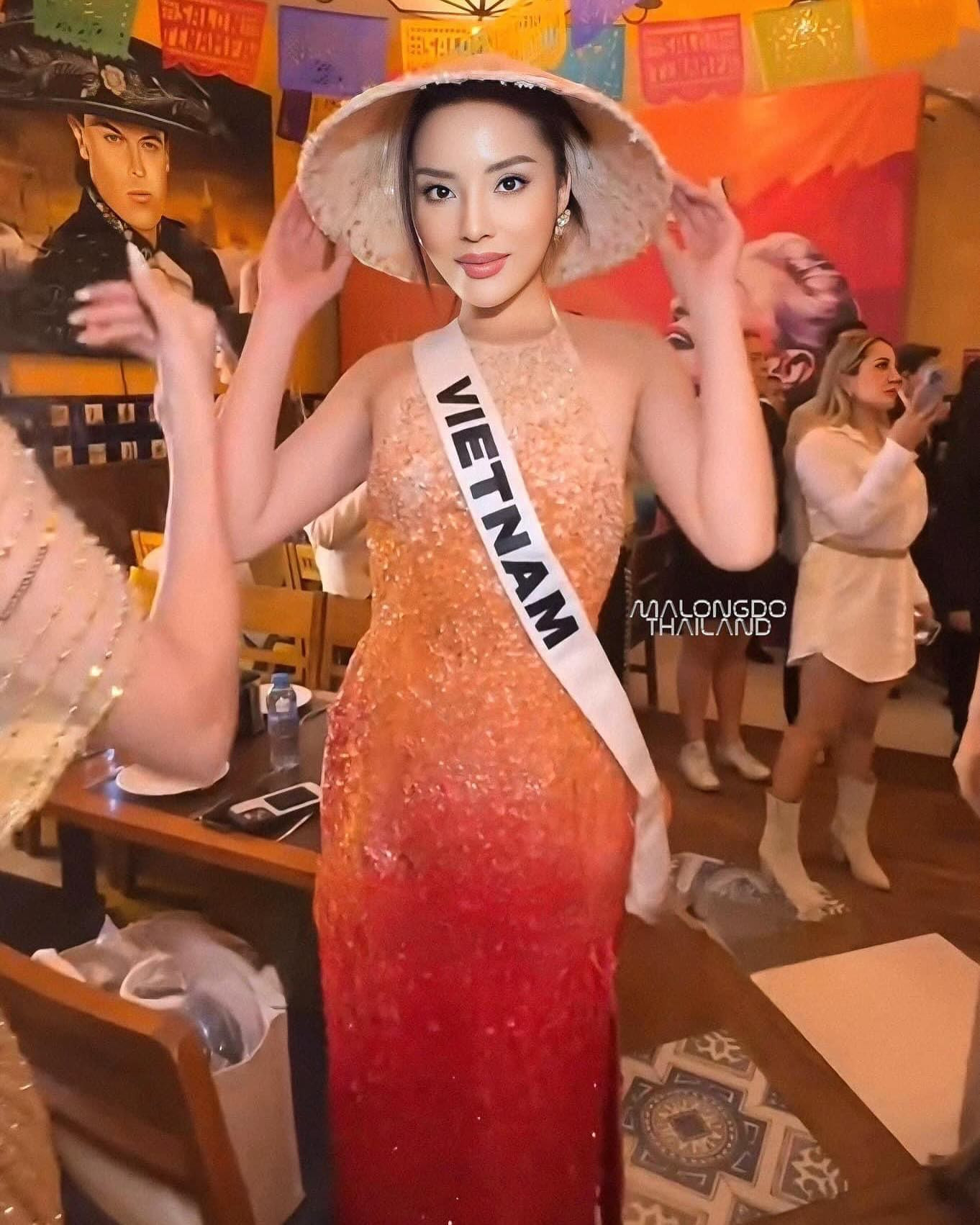 Ahead of the interview, Ky Duyen made a striking appearance in a traditional Vietnamese ao dai and conical hat, proudly showcasing Vietnamese culture and exuding confidence.