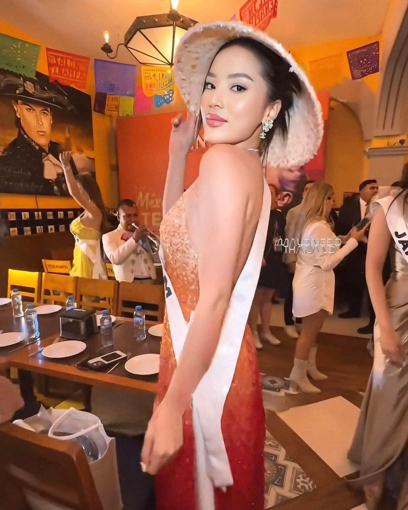 Stepping into a major stage at Miss Universe 2024, Ky Duyen radiated pride in traditional attire while sending congratulations to Thanh Thuy, Miss International 2024.