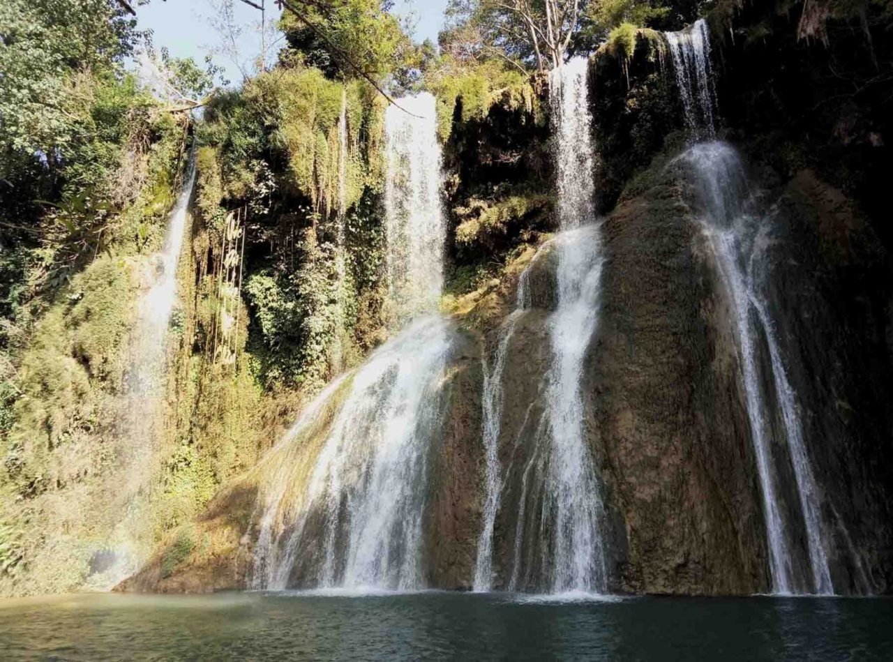 One can also spot beautiful tree-trunks in the middle of the waterfall, still growing well despite the stream constantly eroding the roots. There is also an abundance of trees atop the waterfall, creating a magnificent landscape. Amid the green forests and chirping birds, the waterfall gushes day and night.