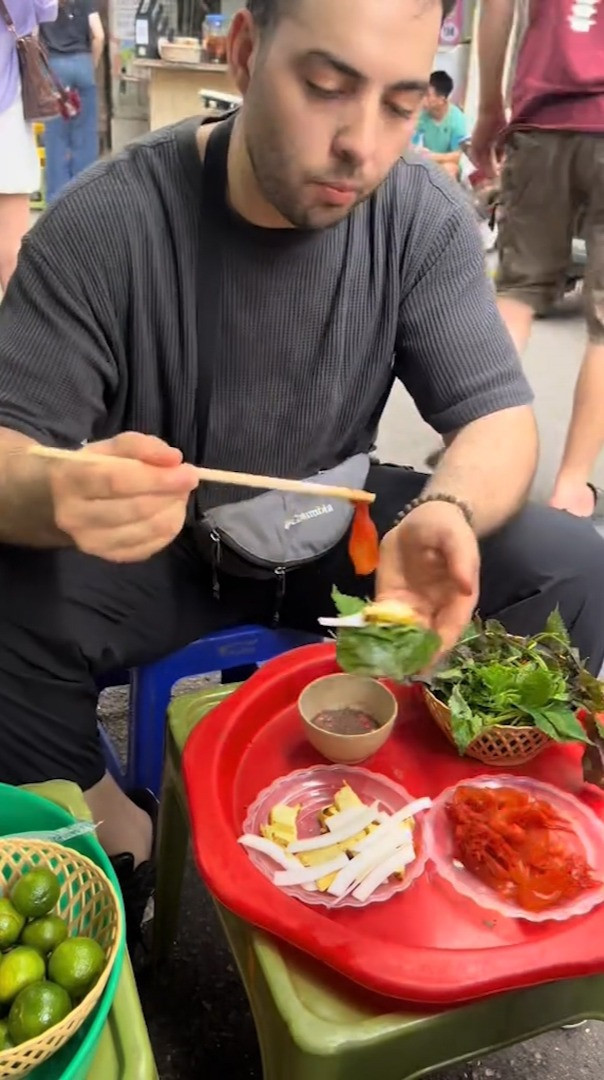 Hamza Smahi, a man from North Africa, has become a viral sensation on TikTok thanks to his videos showcasing Hanoi’s culinary delights. More recently, he’s captured attention by cooking traditional Vietnamese dishes himself, including bun dau mam tom, chao canh, mi Quang, and full homemade family-style meals.