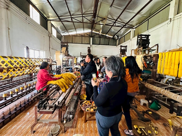 Here, visitors can experience picking mulberry leaves to feed silkworms, spinning yarn and especially making lotus silk with master artisan Phan Thị Thuận.