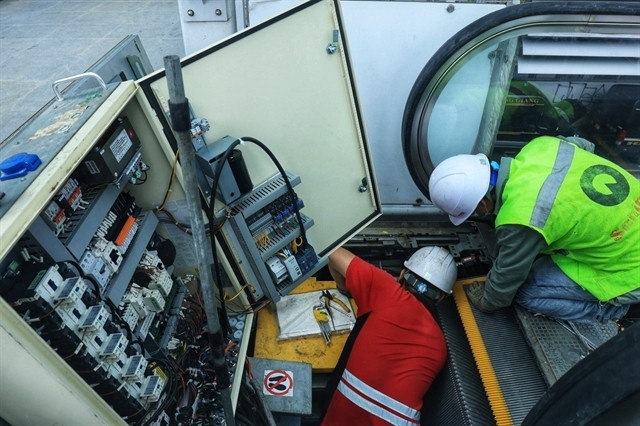 | Technical staff check the automatic elevator system at a station of the Nhổn-Hà Nội Railway Station urban railway line on Wednesday.—VNA/VNS Photo Tuấn Anh |