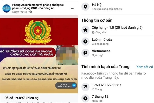 | The interface of a fake Facebook page claiming to be the Cybersecurity and High-tech Crime Prevention Unit. — VNA/VNS Photo |