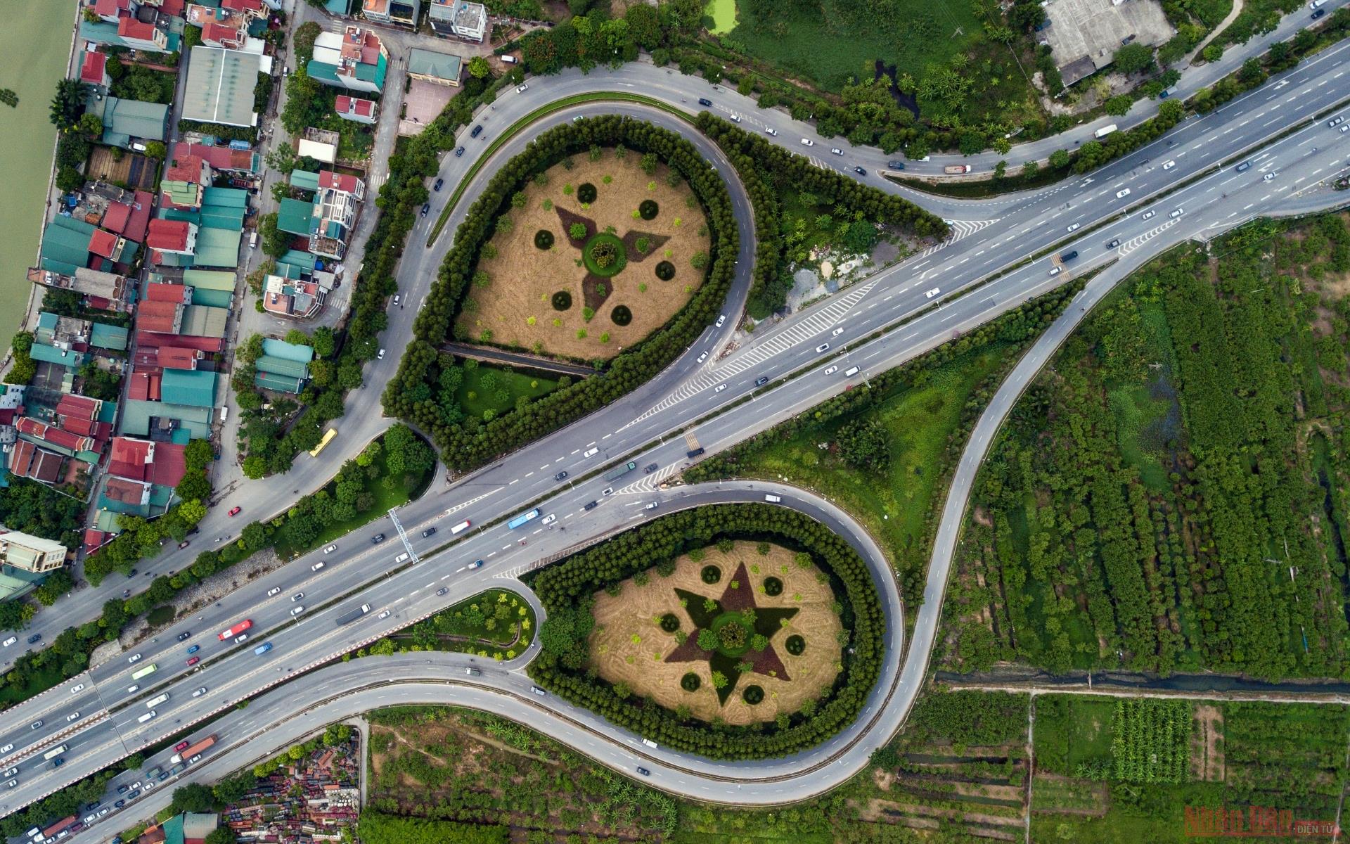 The middle of the first floor is the 11m wide railway, for the Van Dien - Bac Hong rail route, in addition to two lanes for motorbikes and bicycles. The second floor is for trucks with a width of 21 m. This concrete surface also has two lanes for pedestrians.