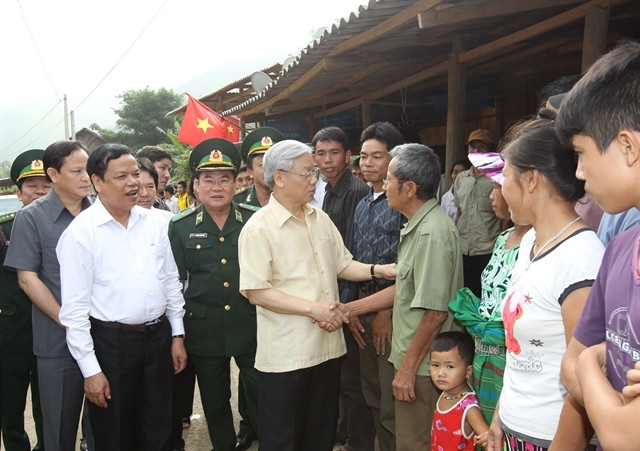 | Party General Secretary Nguyễn Phú Trọng talked with ethnic minority people at Bản Khăm I hamlet, Trung Lý commune, Mường Lát district in Thanh Hóa Province in 2011. — VNA/VNS Photo Photo |