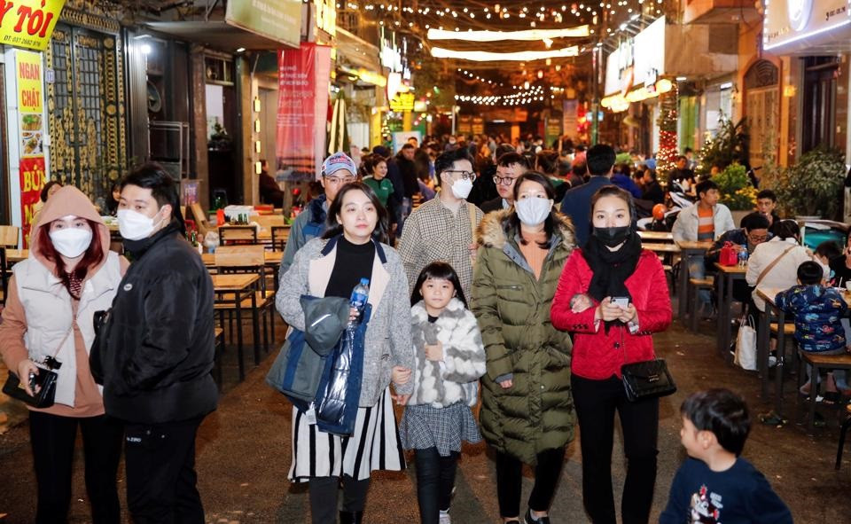 | Visitors to Pearl Island - Ngu Xa night food street and pedestrian area in Truc Bach Ward, Ba Dinh District, Hanoi. Photo: Duy Khanh |
