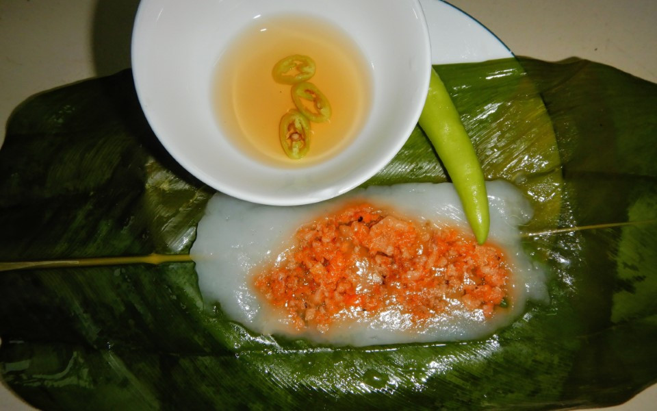 Diners savor the nam cake by dipping it into a small bowl of fish sauce mixed with a few slices of green chili. It’s recommended to enjoy the cake slowly, allowing it to melt on the tongue.