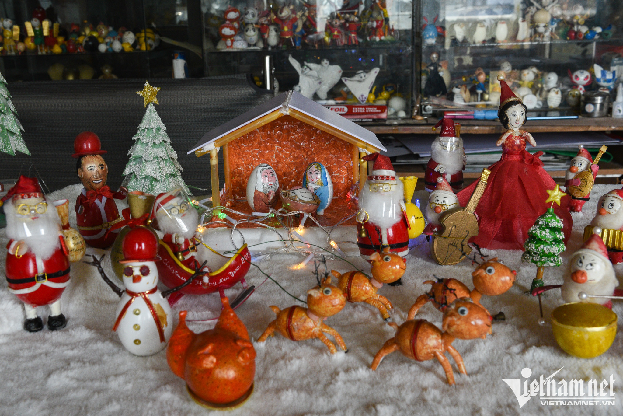 Besides Santa Claus as the main Christmas product, he has made a Snowman, a reindeer pulling a cart, a pine tree, and Snow White and the Seven Dwarfs.