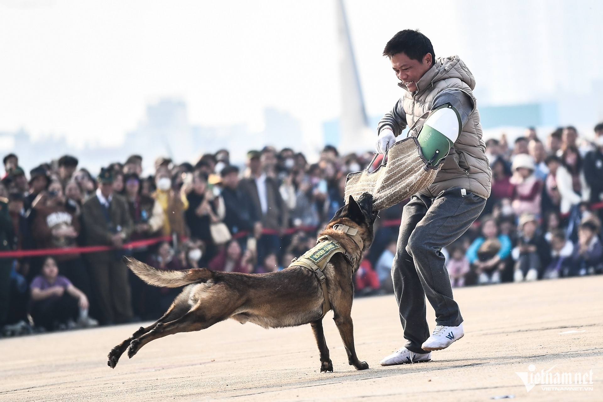 On the afternoon of December 21, thousands of spectators gathered at the Vietnam International Defense Exhibition 2024 to witness a thrilling display by highly trained military dogs.