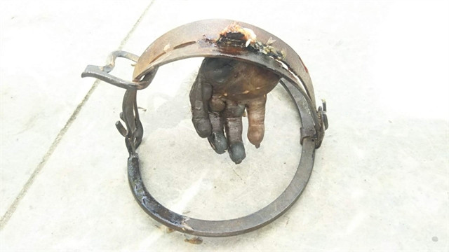 | A clamp trap and a limb of a monkey are found in the Sơn Trà Nature Reserve by volunteers. Traps have increased in the reserve in recent months, and many monkeys are killed by them. Photo courtesy of Ngọc Trúc |