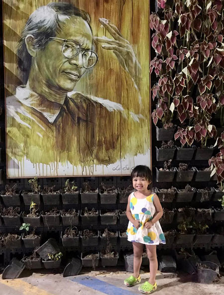 Between large lotus ponds stretches the “Road of Love”, as young visitors call it. On the roadbed are painted musical notes along with the names of Trinh Cong Son’s famous songs. At the beginning of the road, the iron welcome gate is heart-shaped and decorated with pots of petunias and paper flowers.