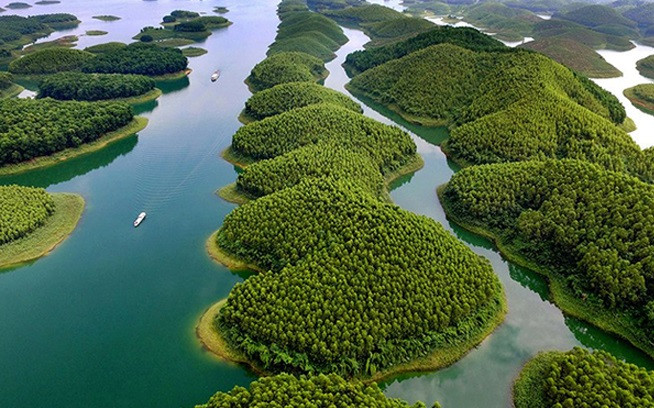 Dubbed “Ha Long bay on mountain” in Vietnam’s northwestern region, Thac Ba Lake is characterized by 1,331 islands emerging on the water surface of the lake, reminding visitors about the pristine beauty of Ha Long bay (Quang Ninh Province) thanks to its similarity in scenery.