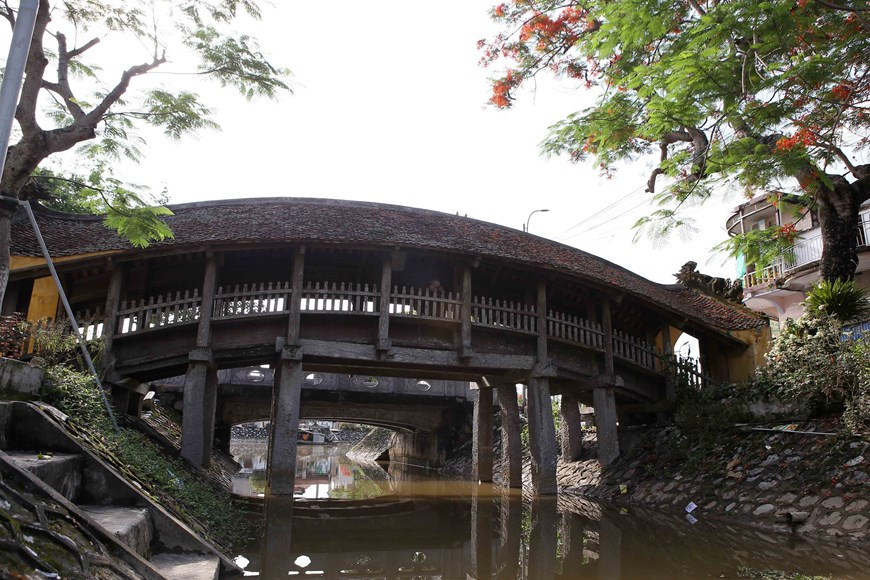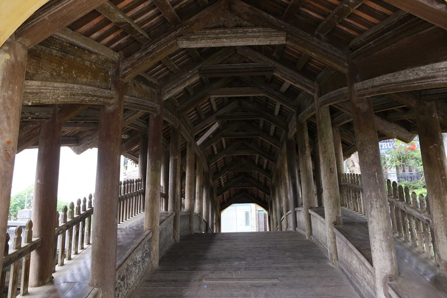 The bridge was designed in the style of “thuong gia ha kieu” (the house is above and the bridge is below) with a grass-covered roof. However, the bridge was repaired for the first time in the 17th century in order to be suitable to the landscape of Luong Pagoda. In 1922, it was restored for the second time and has an imposing appearance today.