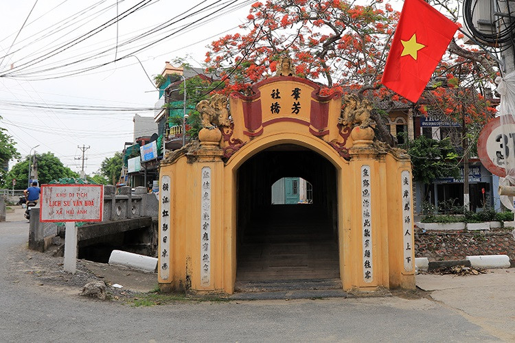 According to ancient documents, the bridge was built in the 16th century, at the same time as Luong Pagoda. It crosses the small Trung Giang River that runs through Hai Anh Commune.