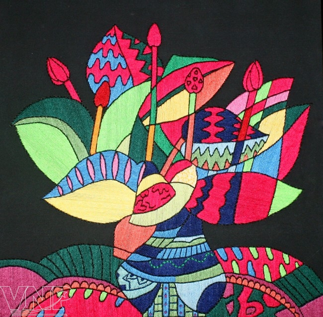 Therefore, when looking at her embroideries, people often see them as both familiar and strange. She has also stylized embroidered paintings with birds, fish, flowers and leaves, which suitably decorate the interiors of hotels, restaurants or living rooms.