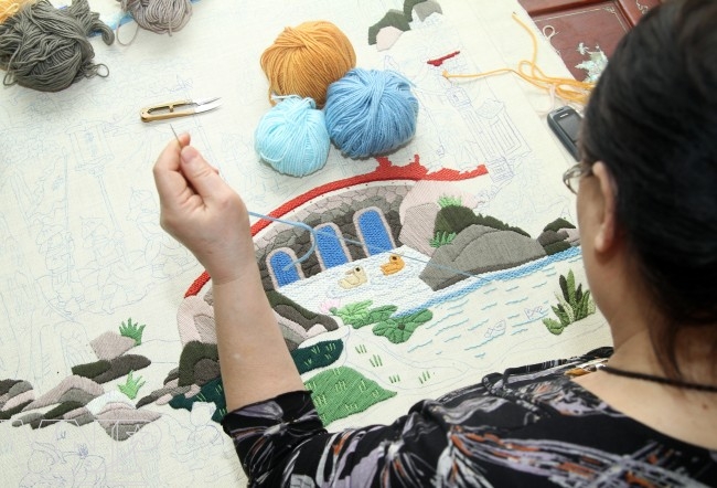 It takes the artisan much time to complete a wool embroidered painting. The small paintings that have many details and patterns require great effort and carefulness while the large ones need creativeness.