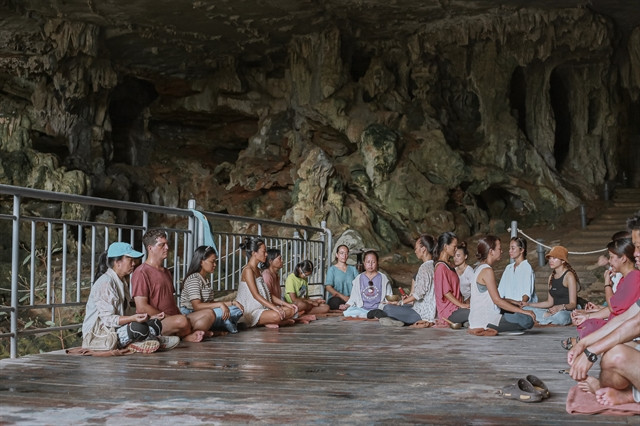 | Tourists do meditation in Trinh Nữ Cave in Hạ Long Bay. — Photo courtesy of LR |