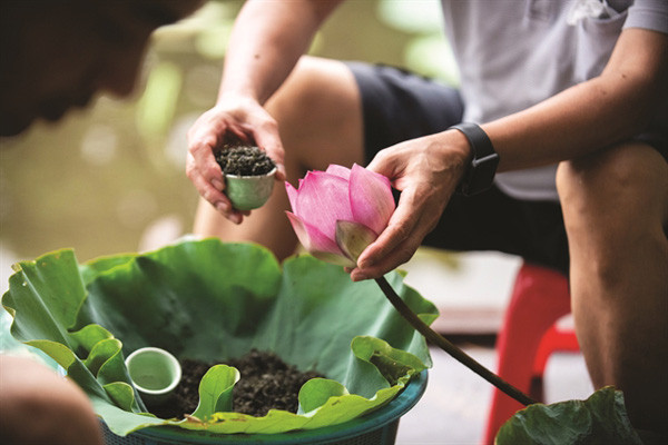 The lotuses used to make the tea must be picked in the early morning when the dew remains heavy in order to ensure the tea’s freshness. After that, the anther is quickly separated from the flower before it withers and loses its fragrance.