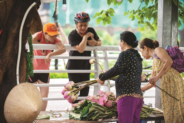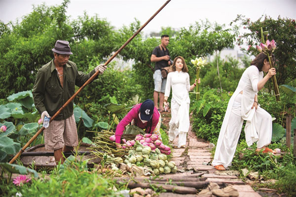 Coming to the lake in Tay Ho District, people will be charmed by the fragrant smell radiating from lotus ponds all over the region. Lotuses grow here in many areas: Kim Lien Pagoda, Quang Khanh Village, Nhat Tan and Xuan La wards.