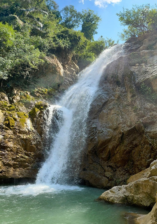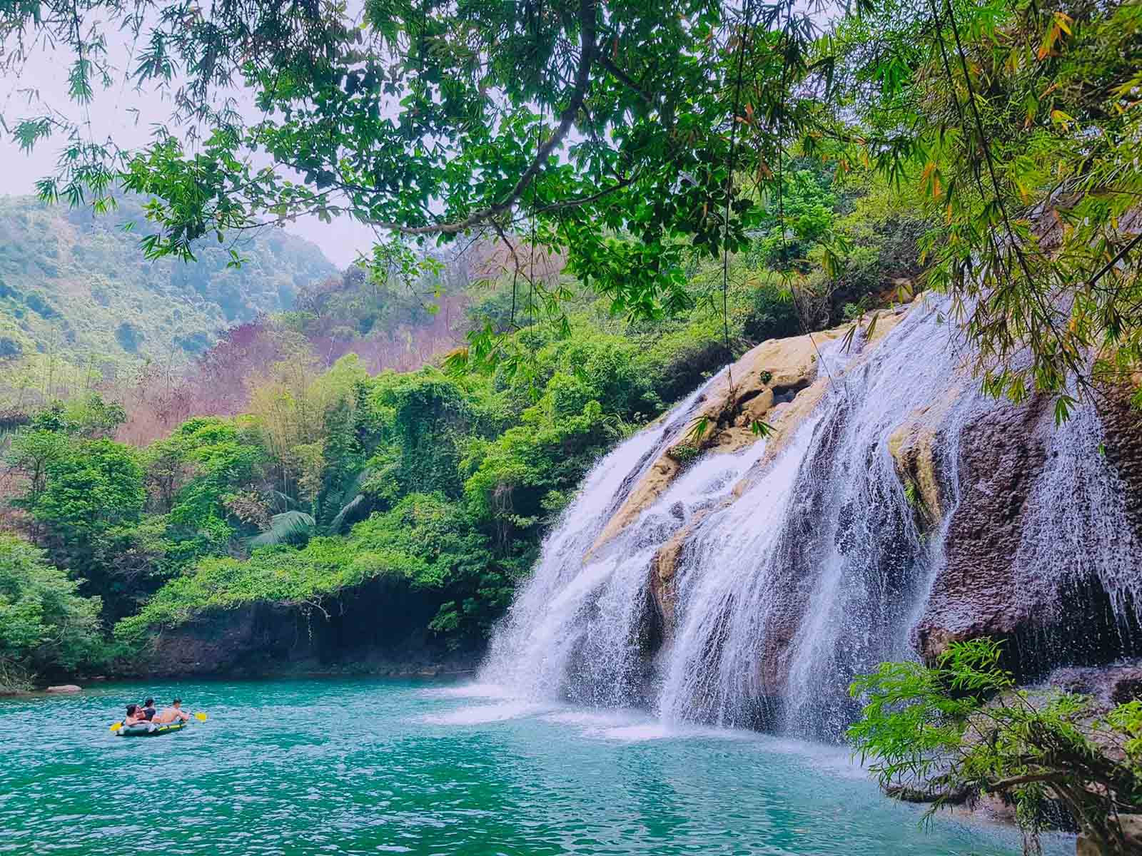 Nestled within a vast forest, the waterfall cascades down from a height of 20 meters, carving its way through steep cliffs. Beneath the waterfall, visitors will find large, flat rocks scattered around the lakes, providing a perfect spot to rest and admire the refreshing, cool air and the grandeur of the landscape. The waterfall maintains a steady flow of water throughout the year, creating a system of lakes of various sizes.