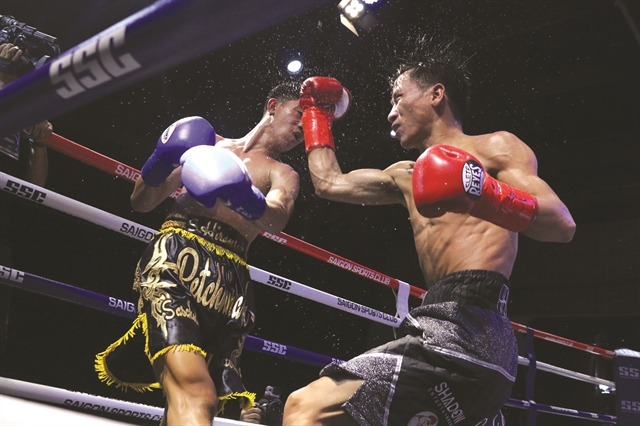 Vietnamese Lê Hữu Toàn (left) defeats ThaiKitidech Hirunsuk after 12 rounds unanimously and secures hisWBA Asia minimum-weight title on March 20 in HCM City. — Photocourtesy of Nam Trung