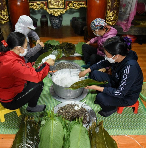 "Unlike rice cake in other locations, Cho Village’s rice cake is particularly tasty and delicious because it is wrapped up in dong (phrynium) leaves, a kind of leaf that grows in forests. In other locations makers often wrapped the cake in banana leaves," elderly villager Hoang Thi Ly said.