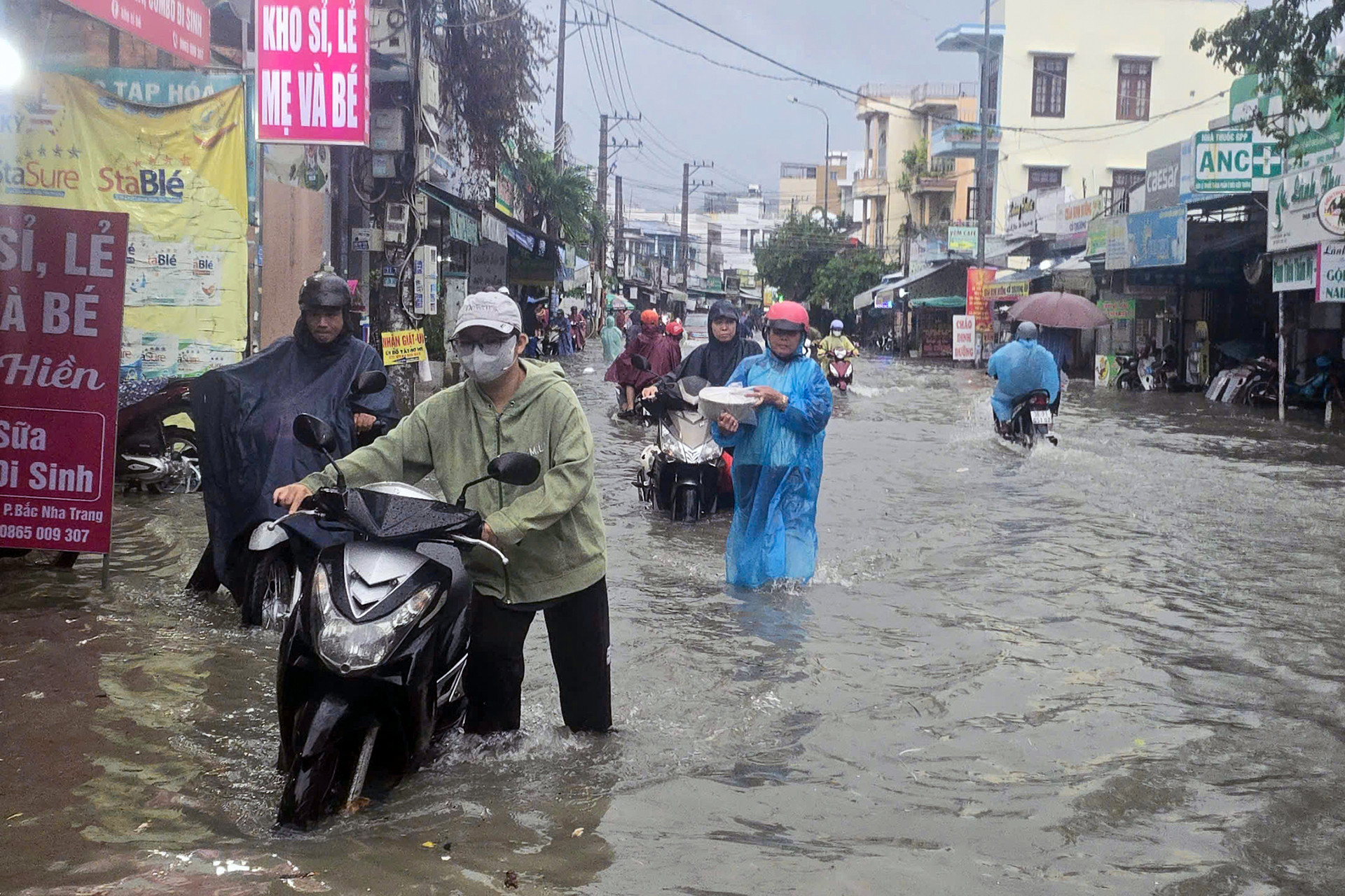 Even parts of the iconic Tran Phu Street (Nha Trang Ward) resembled rivers, as rainwater overwhelmed drainage systems.