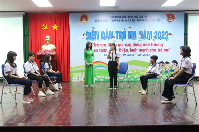 | Students explore the topic of protecting children online at the 2023 Children's Forum in Cần Thơ City. — VNA/VNS Photo Trung Kiên |