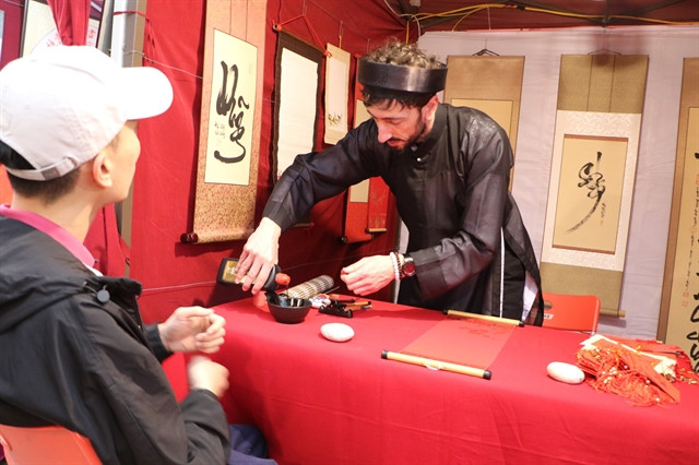 | Jean Sébastien Grill seen at the Spring Calligraphy Festival 2023 in Literature Temple in Hà Nội. VNS Photo Hồng Vân |