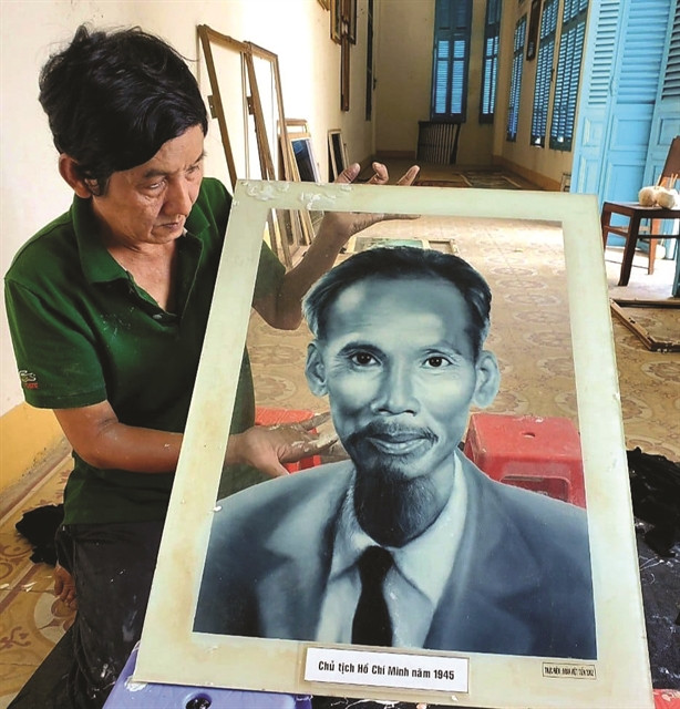 | Tiến is pictured with a reverse glass portrait of President Hồ Chí Minh. — Photo courtesy of the artist |