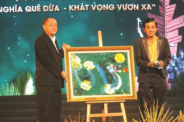 In the art programme to pay tribute to Bến Tre, held in HCM City in January, Tiến made a glass painting entitled Rồng Xanh Sông Sài Gòn (Blue Dragon - Sài Gòn River) in four minutes. It was sold at VNĐ300,000,000 (US$12,000), which will be donated to disadvantaged school students in Bến Tre.