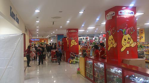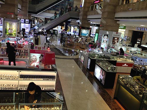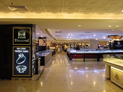 Trang Tien Plaza is quite quiet from the lower floors selling luxury goods to the higher ones selling more affordable goods.