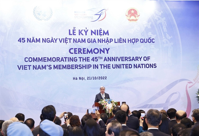| United Nations Secretary-General António Guterres addressed the ceremony commemorating the 45th anniversary of Việt Nam’s membership in the UN held in Hà Nội on Friday. — VNA/VNS Photo |