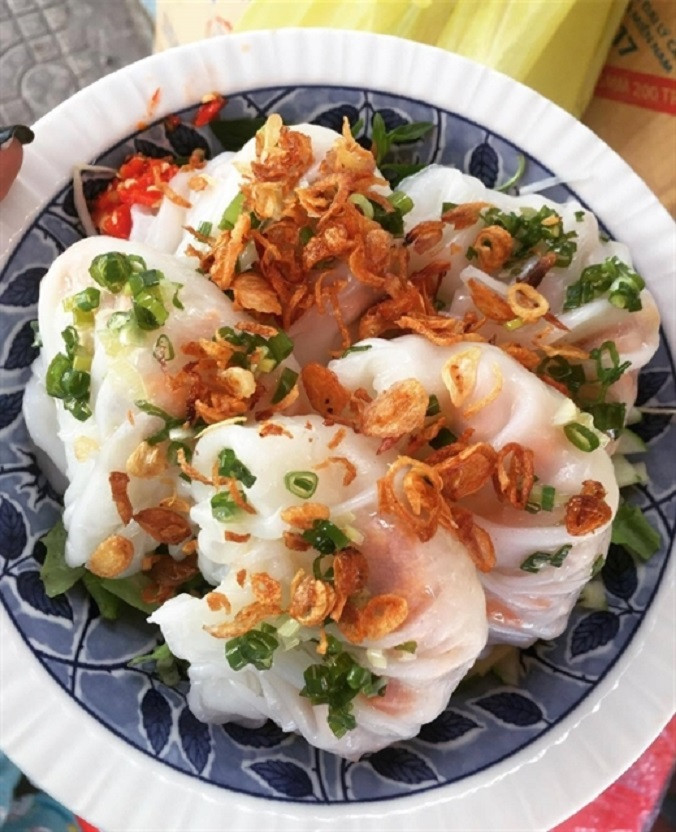 Apart from being steamed, many cake sellers also make it há cảo (a small piece of dough or pastry wrapped around fish, meat, or vegetables and cooked in oil, steam, or boiling water) or cut it into thin slices, roast it and wrap it up in fresh herbs before dipping it in an aromatic sauce, she added.