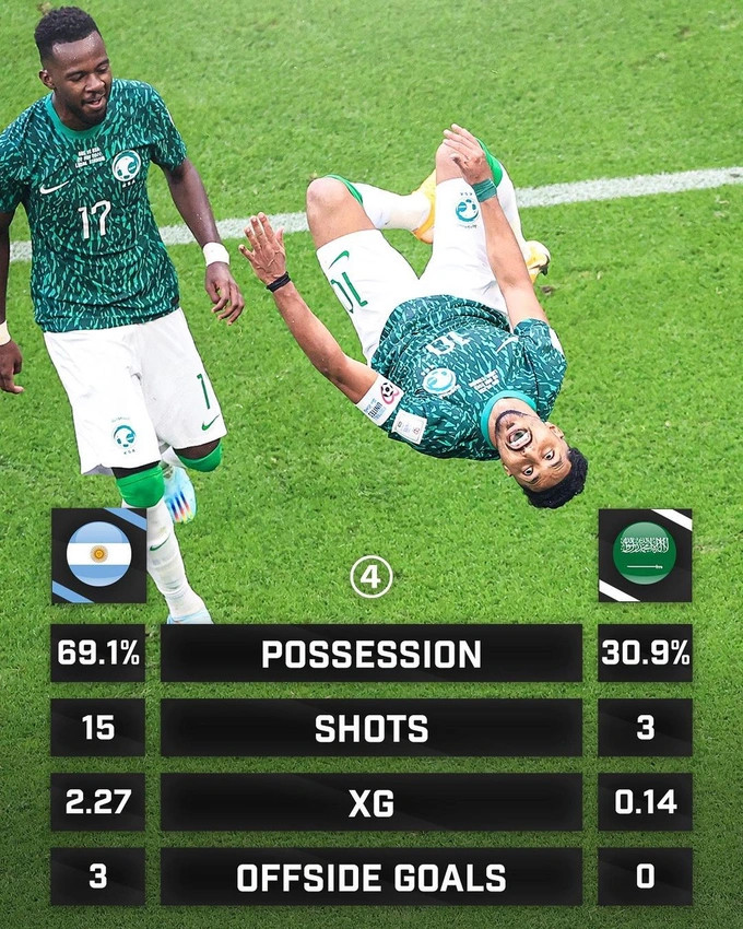Argentina là một trong những ứng cử viên cho chức vô địch tại World Cup 2022. Nhưng trận thua sốc trước Saudi Arabia đêm qua khiến các fan hâm mộ đội bóng Nam Mỹ thất vọng. Cũng phải nói thêm rằng, Saudi Arabia đã có trận đấu cực hay với chiến thuật hợp lý và tinh thần thi đấu đáng nể phục.