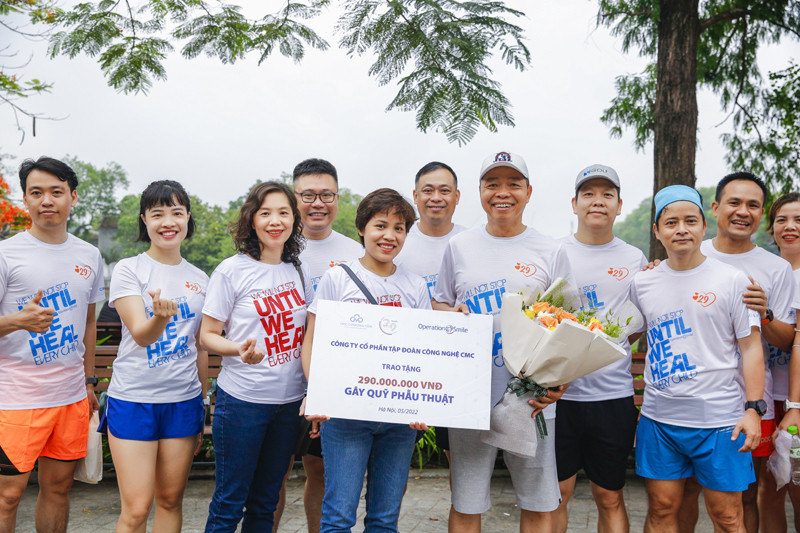 Với 1km chạy của vận động viên tham gia, CMC sẽ gửi tặng 1.000 VNĐ cho Tổ chức phẫu thuật nụ cười Operation Smile, hướng đến mục tiêu 29 em nhỏ có cơ hội được phẫu thuật sứt môi, hở hàm ếch.