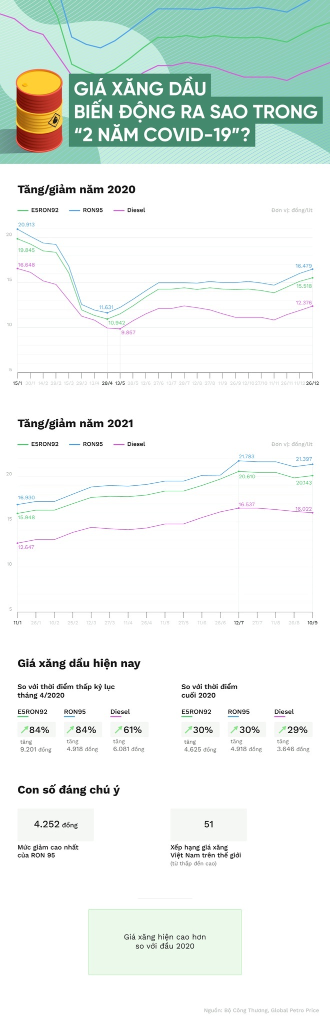 Sau gần 2 năm với hàng loạt đợt điều chỉnh tăng, giảm, giá xăng dầu hiện nay đã tăng cao hơn so với thời điểm đầu năm 2020 - thời điểm trước khi Covid-19 ập đến.
