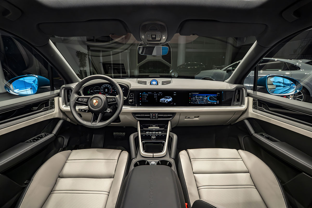 Những thay đổi rõ ràng hơn trên Cayenne 2024 chủ yếu tập trung ở khu vực bên trong cabin với bố cục bảng điều khiển mới, tương tự như mẫu xe điện Porsche Taycan. Theo đó, nội thất của xe sẽ có sự xuất hiện của 3 màn hình gồm bảng đồng hồ số 12,6 inch, thông tin giải trí 12,3 inch và màn hình hành khách 10,9 inch dưới dạng tùy chọn.