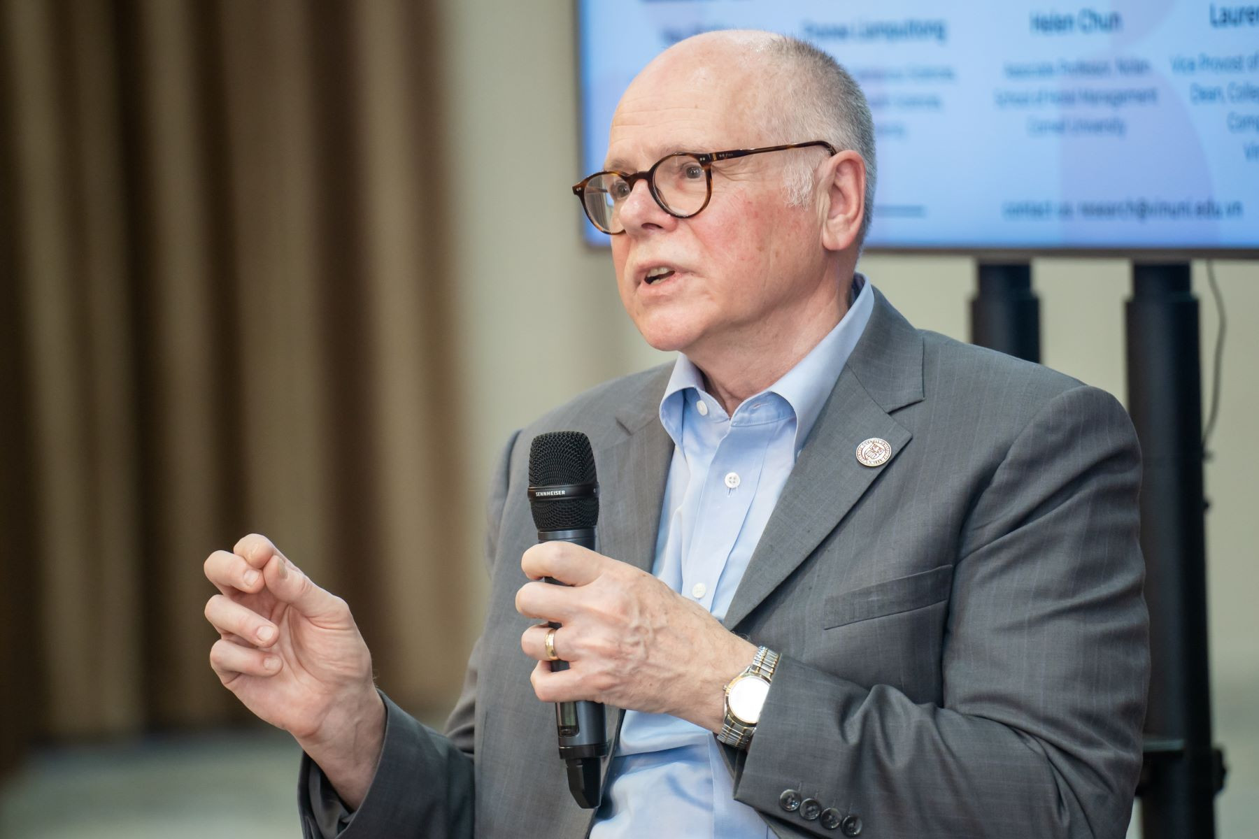 Trả lời câu hỏi: “Vì sao một ngôi trường có bề dày lịch sử hơn 150 năm như Cornell lại chọn hợp tác cùng một trường đại học “non trẻ” như VinUni”?, GS. Max Pfeffer đánh giá, việc kiến tạo một trường đại học tinh hoa tại Việt Nam và trên thế giới cũng là một cơ hội lớn với Cornell.