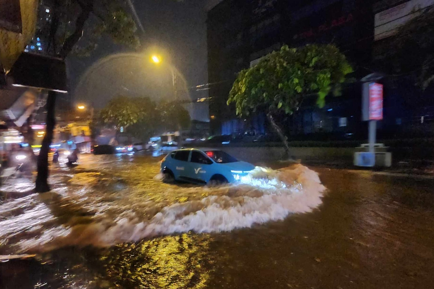 Theo ghi nhận của PV VietNamNet, trong tối 22/8, nhiều tuyến phố ở Hà Nội đã xảy ra tình trạng ngập úng cục bộ. Đường Nguyễn Trãi, Nguyễn Tuân, Nguyễn Xiển, đường 70... ngập sâu khiến giao thông bị cản trở, hàng loạt ô tô, xe máy bị chết máy.