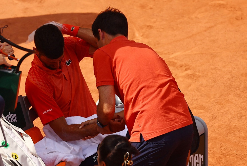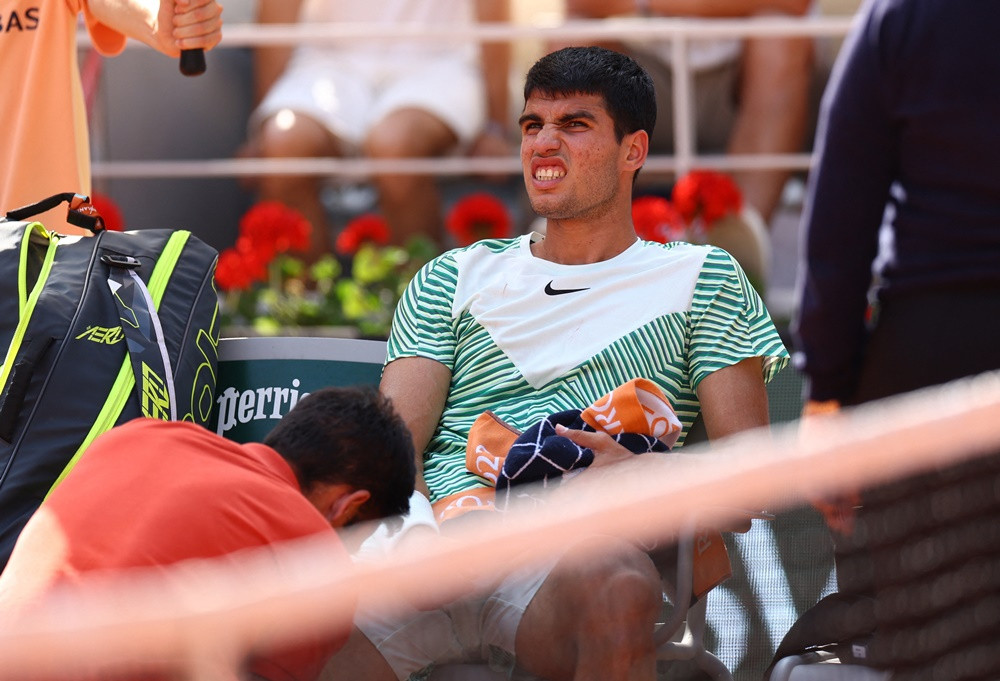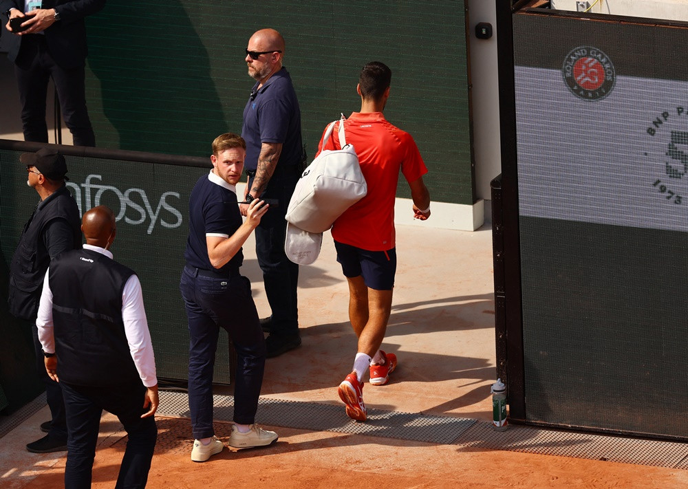 Tuy nhiên, sau khi bác sĩ kiểm tra và xác định Alcaraz chỉ bị "chuột rút" nên anh không được sử dụng quyền Medical Timeout. Trọng tài quyết định phạt một ván thua của Alcaraz theo luật của Roland Garros. Nole cũng sang hỏi thăm tình hình của người đàn em.