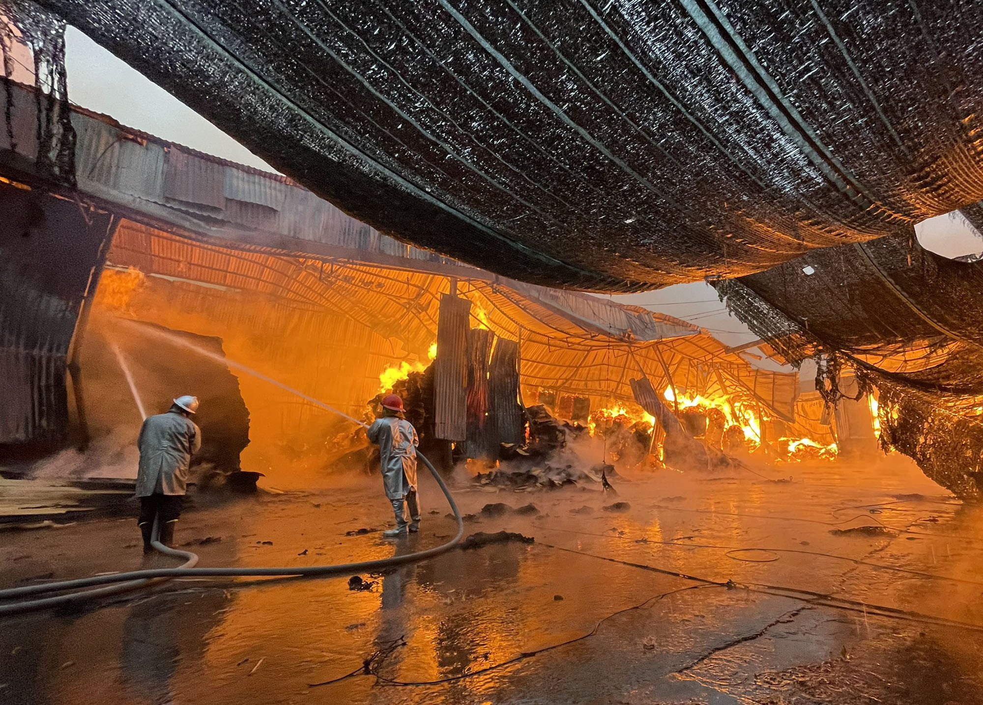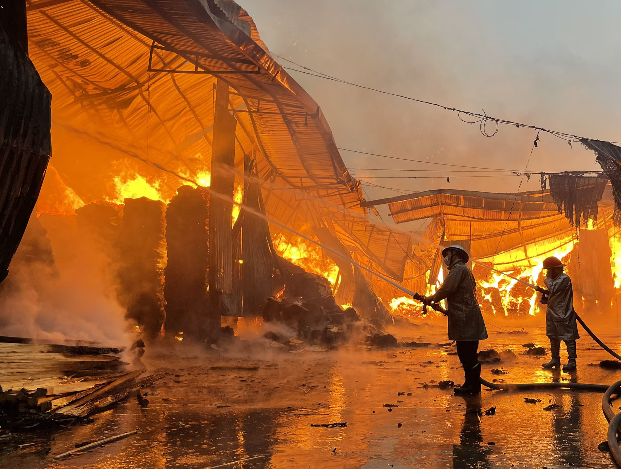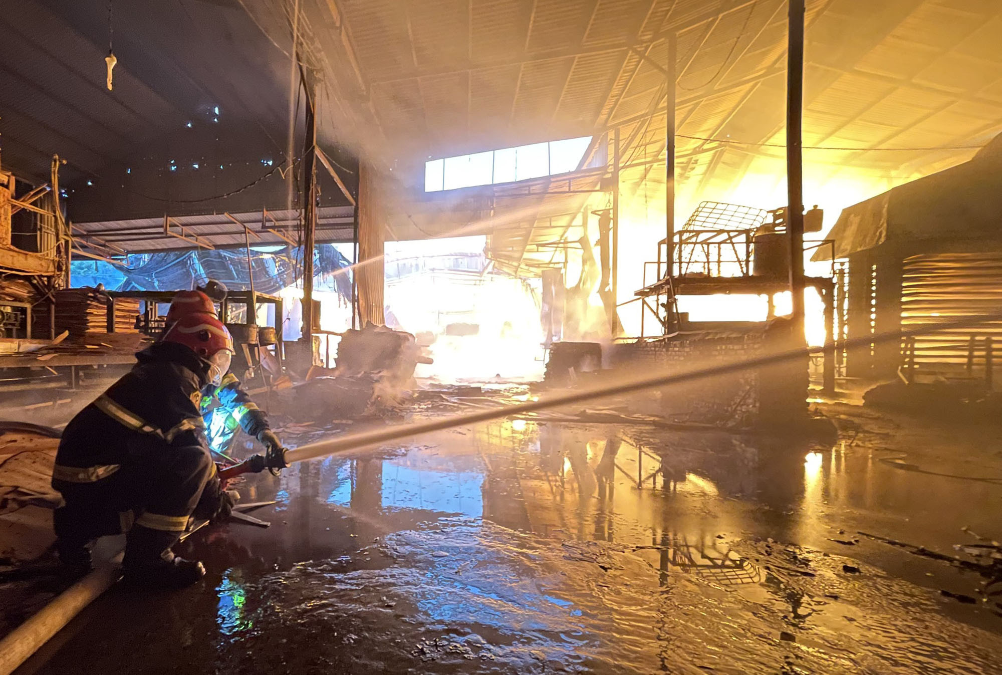 Khu vực xảy ra cháy là xưởng gỗ dán với quy mô 1 tầng, kết cấu khung thép, mái tôn. Tình hình đám cháy diễn biến phức tạp do có nhiều nguyên liệu dễ bắt cháy, vận tốc ngọn lửa lan nhanh.