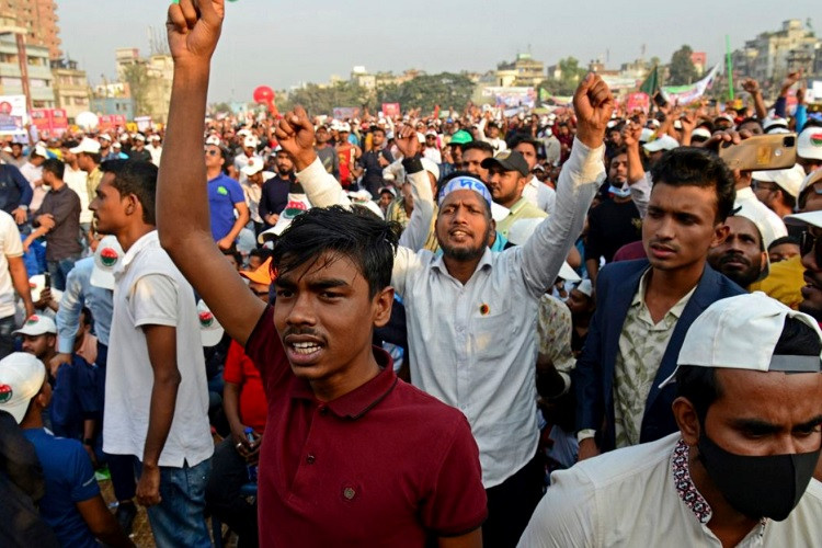 Theo hãng tin CNN, người dân Bangladesh tham gia các cuộc tuần hành ở thủ đô Dhaka nhằm mục đích yêu cầu Thủ tướng đương nhiệm Sheikh Hasina từ chức và mong muốn một cuộc tổng tuyển cử sẽ diễn ra.