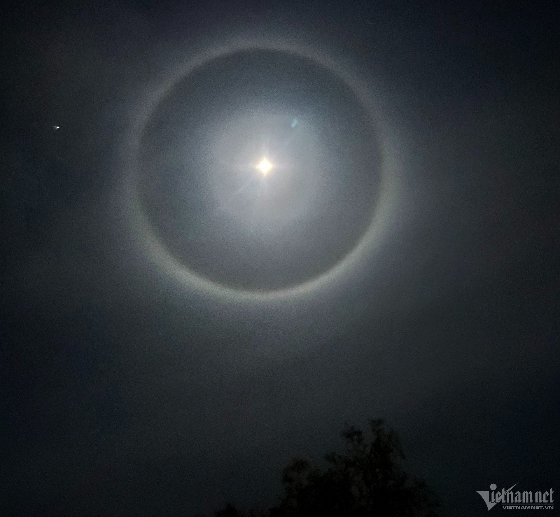 Hào quang Mặt trăng rực sáng thực chất là ảo ảnh quang học hình thành khi ánh sáng bị các tinh thể băng trong mây khúc xạ.